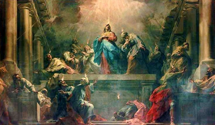 In those days Peter stood up among the brethren (the company of persons was in all about a hundred and twenty)... When the day of Pentecost had come, they were all together in one place. And suddenly a sound came from heaven like the rush of a mighty wind... And there appeared to them tongues as of fire... And they were all filled with the Holy Spirit.– Acts 1:15; 2:1-4