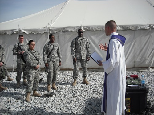 The Collection for the Archdiocese for the Military Services helps identify and support vocations within the military. Currently, 285 military chaplains provide pastoral care to over 1.5 million Catholics on ships, in combat areas, on bases, and in 153 VA hospitals. Fr. Jason Hesseling and Fr. Tim Mergen, priests of the Diocese of Madison, both serve as military chaplains.